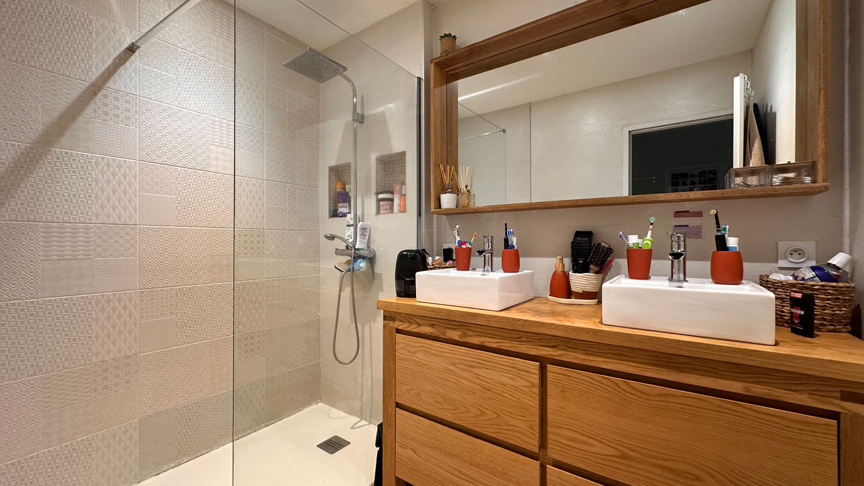 • Une salle d’eau moderne avec double vasque